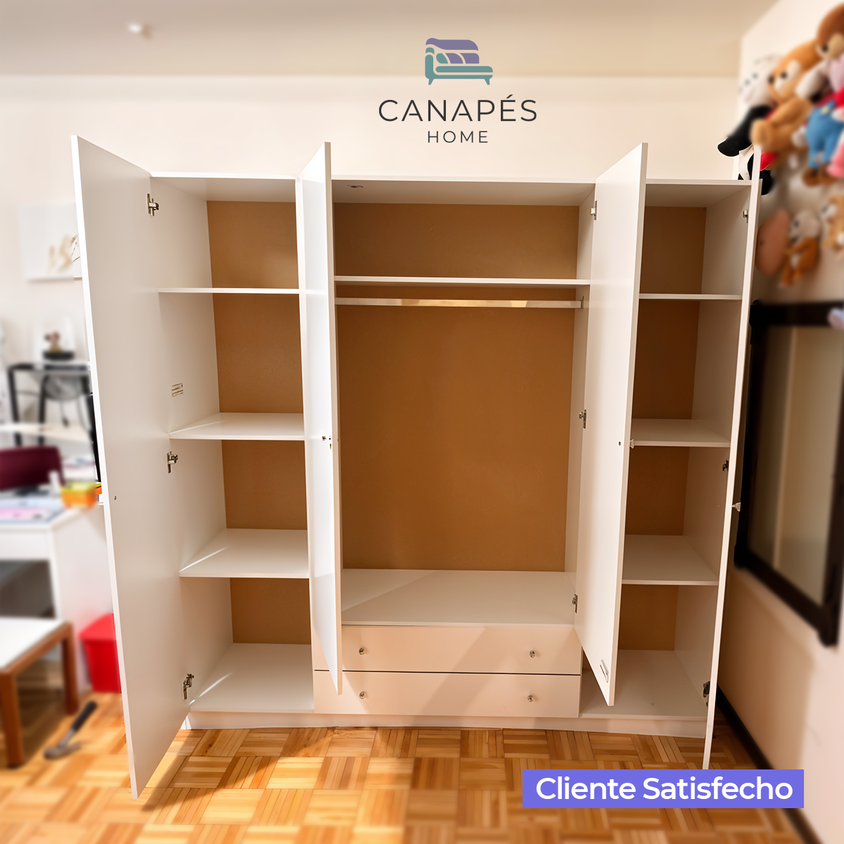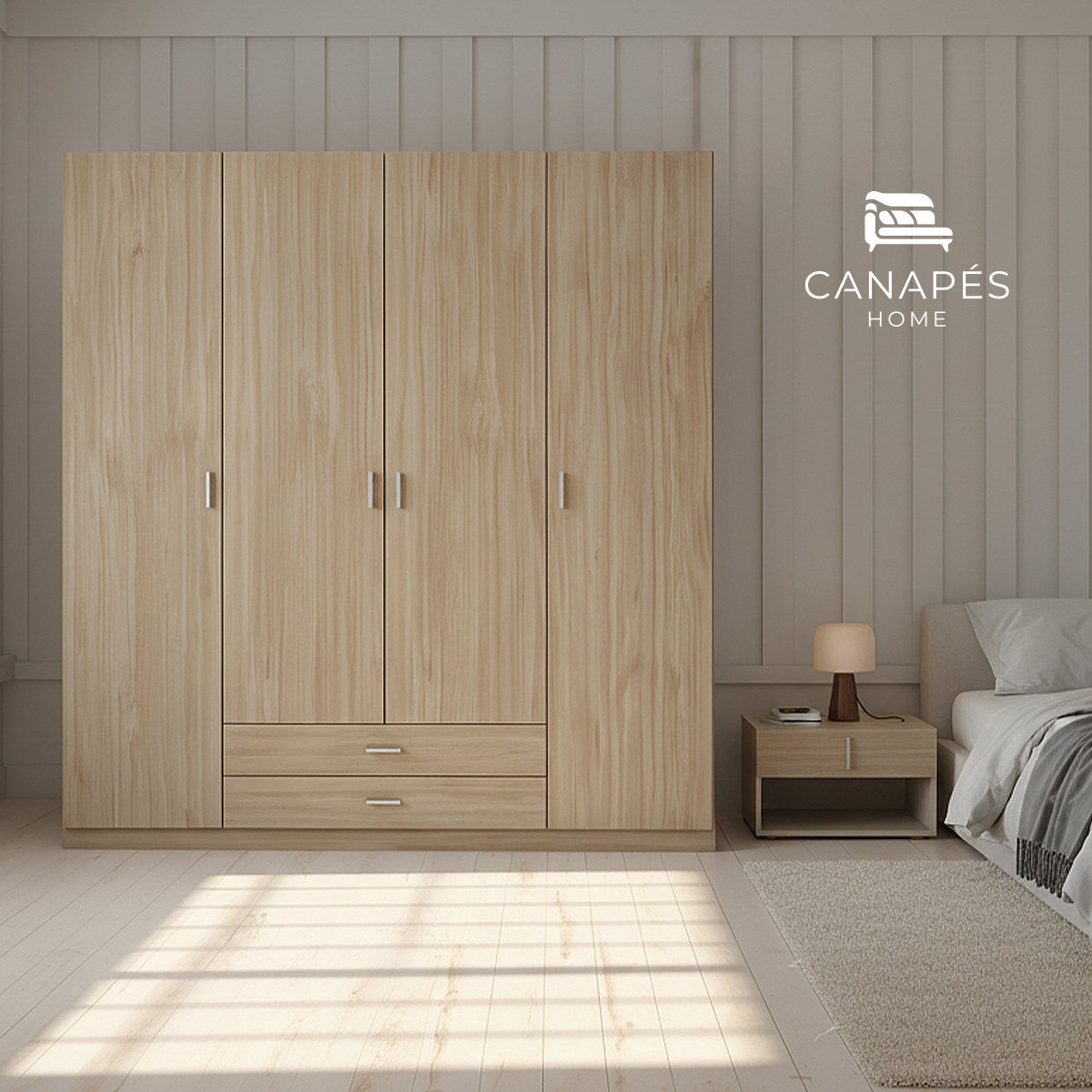 Dale un toque de orden y sofisticación a tu dormitorio con el Armario de 4 Puertas, pensado para quienes necesitan máxima capacidad y diseño moderno.